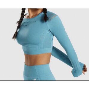 NWT Gymshark Flawless Knit Long Sleeve Crop Top Sea Blue Size Small