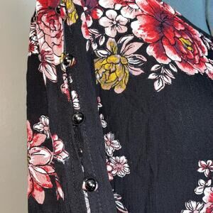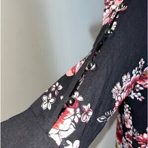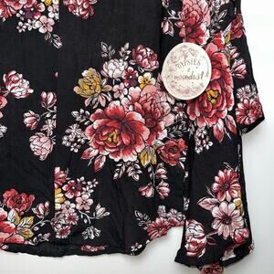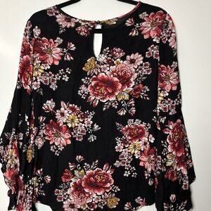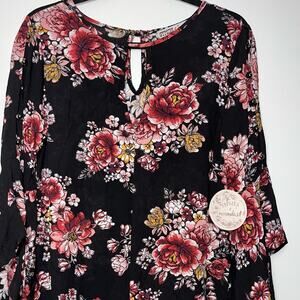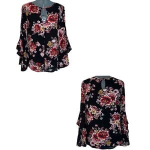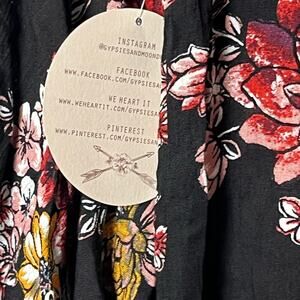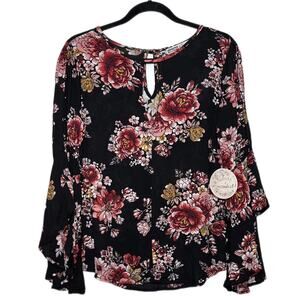 NWT Gypsies & Moondust Gigi Printed Keyhole Top Bell Sleeves Women's Size small black red pink floral