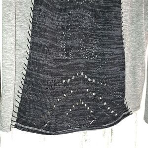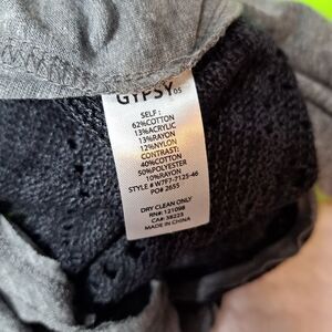 Beautiful light weight top with crochet detail on back and neck line. The seams are detailed with black thread.