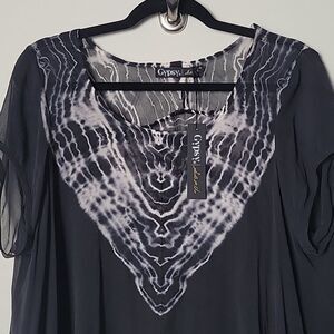 NWT Gypsy 05 Silk Cover Up XS Swim Beach Tunic Sheer Boho Sexy Black Tye Dye