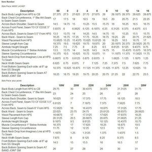 Length: missy length 27-1/2" to 28-7/8"; plus length 29-3/4" to 31-3/4"