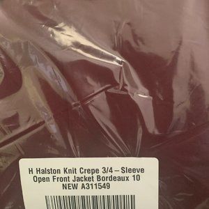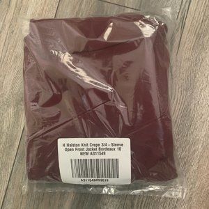 NWT (NEW IN BAG) H BY HALSTON KNIT CREPE 3/4 SLEEVE OPEN FRONT JACKET SIZE 14. COLOR IS BORDEAUX.