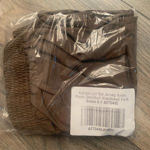 NWT (NEW IN BAG) H BY HALSTON JET SET JERSEY ANKLE PANTS SMOCKED WAISTBAND COLOR EARTH GREEN SIZE 6.