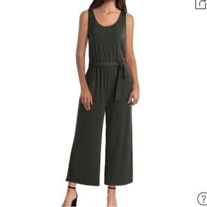 NWT H HALSTON Women's Scoop Neck Belted Jumpsuit In Deep Evergreen, size XS