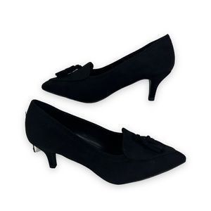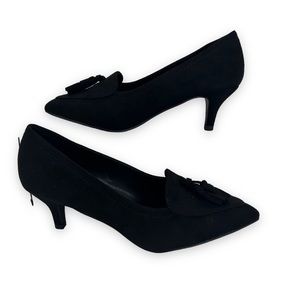 NWT H Halston Dubai Tassel Kitten Heel Pumps in vegan suede Black size 7.5 NEW