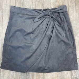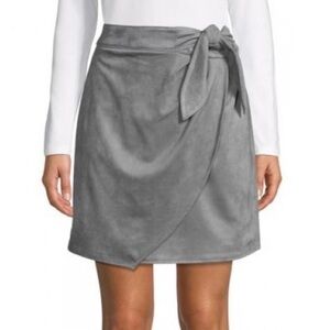 NWT H Halston Grey Faux Suede Wrap Mini Skirt L