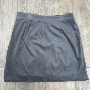 New with tag NWT H Halston Faux Suede Faux Wrap Mini Skirt in silver grey color. Lined, seamless zipper, size L.