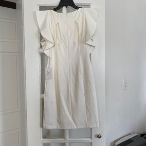 NWT - H by Halston - White Ivory Cocktail Ruffle Sleeve Dress