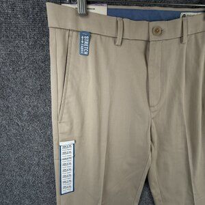 NWT HAGGAR Premium NO IRON KHAKI Straight Fit Stretch Flat Front Pant 32x34 SAND