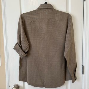 NWT, this great shirt is perfect for fall adventures. There is the option of wearing sleeves long or rolled up and secured with a button closure. The 4-way stretch fabric is light brown in color, lightweight, moisture wicking and breathable. It has a patch pocket and a hidden zippered tech pocket measuring 7”x9” and is easy care.