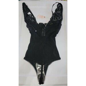 NWT HAH Hot as Hell Intimates M Bridal lace Thong Bodysuit Black 117789
