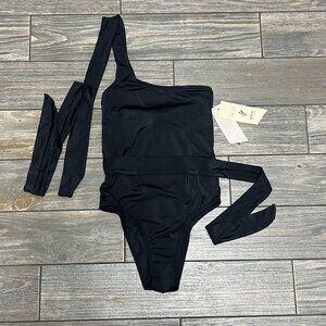 NWT HAH X Free People One Piece Swimsuit Small 1 4 Ur Soul 1 Shoulder Black