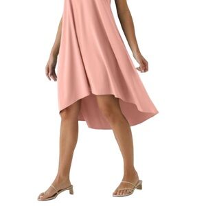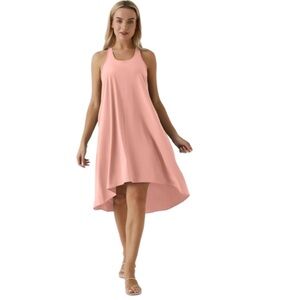 Style meets comfort in this sporty chic Halara dress. Designed in a soft blush pink with a breezy high-low hem, this flowy racerback style features built-in shelf bra, pockets, quick dry fabric, and a casual yet flattering fit.