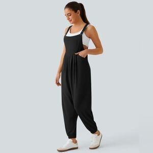 NWT HALARA Deep Sapphire Blue Adjustable Strap Button Casual Jogger Overalls L