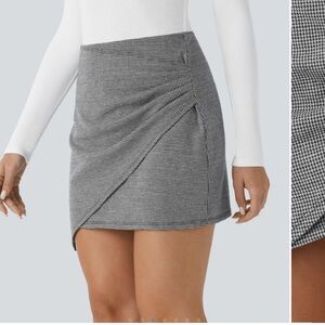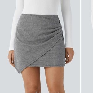 NWT HALARA High Waisted Asymmetrical Ruched 2-in-1 Houndstooth Mini Work Skirt