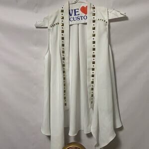 NWT HALE BOB ARMLESS OPEN STUDDED WHITE BLOUSE SIZE M