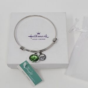 NWT HALLMARK GIFT AUGUST BIRTHSTONE SILVER BANGLE BRACELET WOMEN FASHION JEWELRY