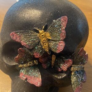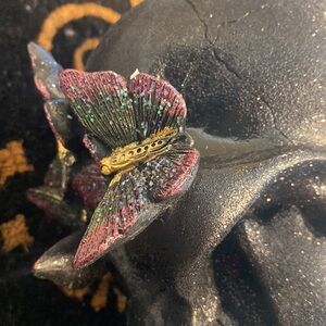 NWT HALLOWEEN Goth Glitter Skull w/ Butterflies