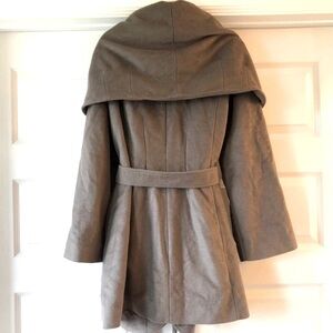 A gorgeous soft Wool Blend Belted Wrap Coat with a Cape that can also be worn as a beautiful hood.
