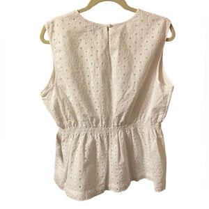 Brand new with tags. White eyelet peplum blouse. WOMENS size large. Perfect for summer.