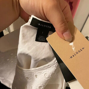 NWT HALOGEN EYELET PEPLUM BLOUSE
