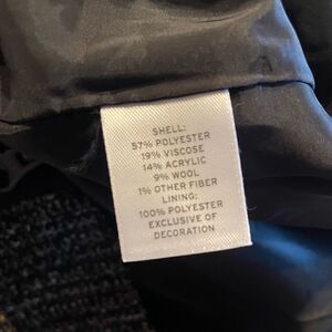 Shell: 57% Polyester 19% Viscose 14% Acrylic 9% Wool 1% other fiber