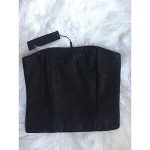 NWT HALSTON HERITAGE Sz 2 BLACK SEQUIN STRAPLESS CORSET TOP $345
