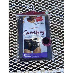 NWT HANES Intimate Seam Free Smoothing Tagless Briefs Black 3 Pack Sz 8/XL