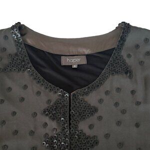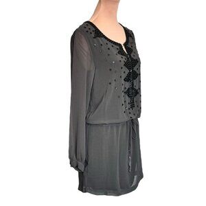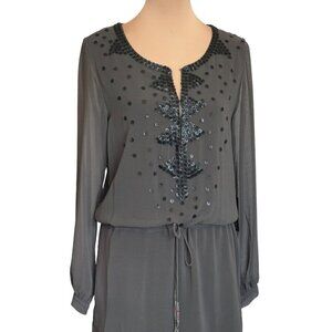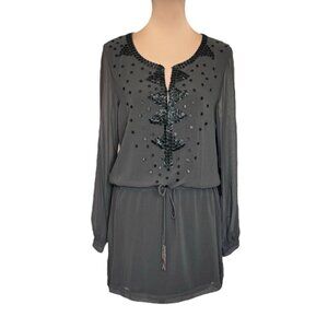 NWT HARPER Tunic Mini Dress Sz.S Gray Silk Chiffon Sequin Embellished Event Boho