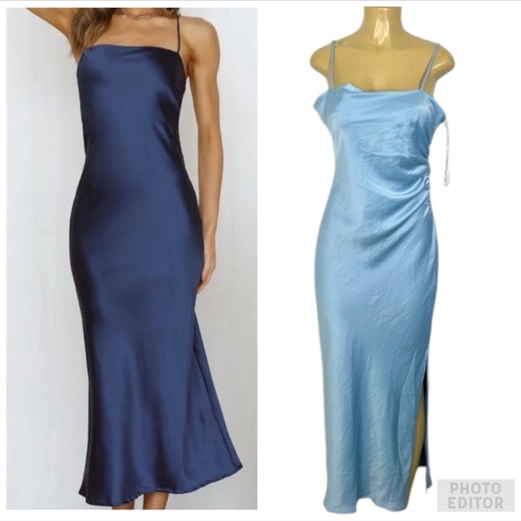 NWT HAUSE OF HARLOW 1960 BLUE SATIN MIDI DRESS SIZE L
