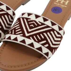 NWT HAUTE HIPPIE Jamun Brown Tribal Print Textile Slide Sandals 8.5