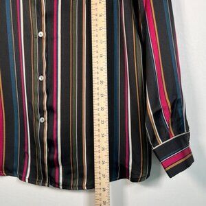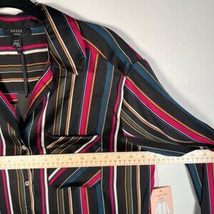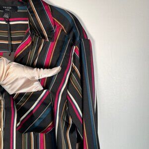 NWT HAVER LONDON Multicolor Striped Button Up Collared Long Sleeve Shirt Pocket at Chest 2 WAYS TO WEAR UNTIED/TIED Lightweight Size XS