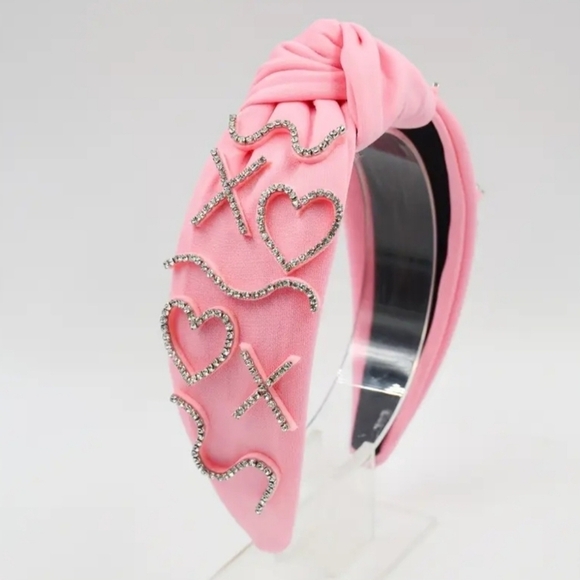 NWT HEART RHINESTONE KNOTTED HEADBAND PINK