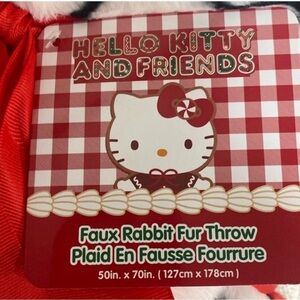 NWT HELLO KITTY FAUX RABBIT FUR CANDY CANE CHRISTMAS THROW BLANKET