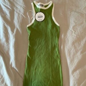 NWT HELLO MOLLY ALWAYS TRENDY BODYCON MIDI DRESS GREEN WITH WHITE TRIM SIZE XS