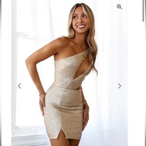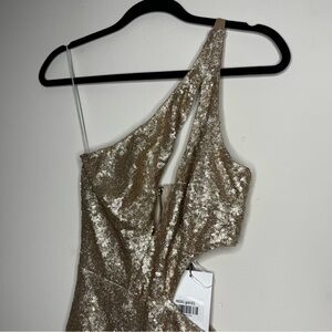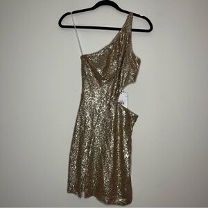 NWT HELLO MOLLY Love On My Mind Gold Sequin One Shoulder Cocktail Club Dress
