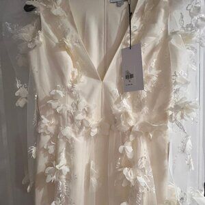 NWT HELSI Blair Floral 3D appliqué Dimensional Gown Maxi Dress Off-White Size M