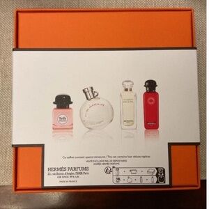 1 (0.25oz) Twilly eau de parfum, 1 (0.25oz) Eau des Merveilles eau de toilette, 1 (0.25oz) Un Jardin sur le Nil eau de toilette and 1 (0.25oz) Eau de Rhubarbe Ecarlate eau de cologne