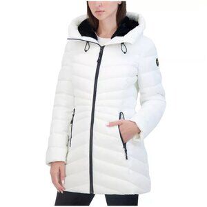 HFX Outdoors White Faux-Fur Trim Hooded Puffer Casual Winter Warm Jacket