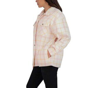 NWT HFX Women's Relaxed Fit Front Snap Cozy Plaid Shirt Jacket