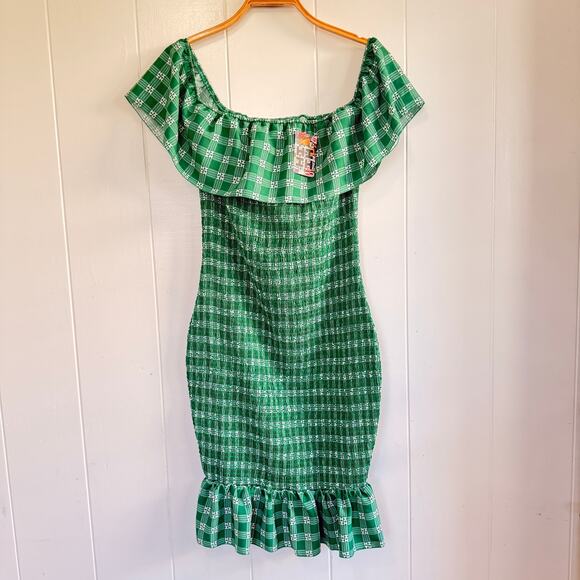 NWT HI FINEST Off the Shoulder Smocked Green Dress Size XL