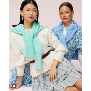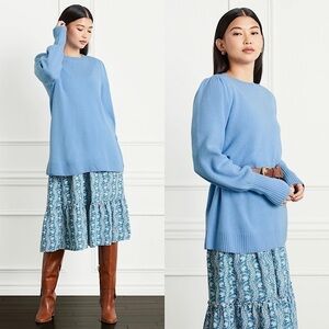 NWT HILL HOUSE Sky Blue Merino Wool Soft Knit Puffed Long Sleeve Tunic Sweater M