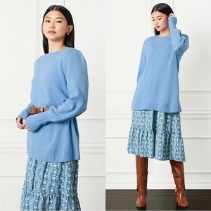 NWT HILL HOUSE Sky Blue Merino Wool Soft Knit Puffed Long Sleeve Tunic Sweater S