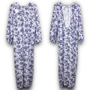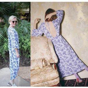 NWT HILL HOUSE Vintage Floral Puff Long Sleeve Gathered Open Back Maxi Dress XL