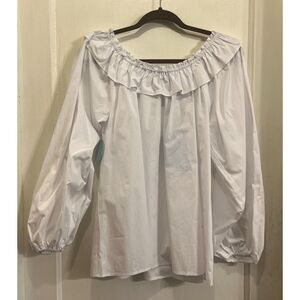 NWT HILL HOUSE White The Lena Cotton Blouse Top Shirt Women's Size Large