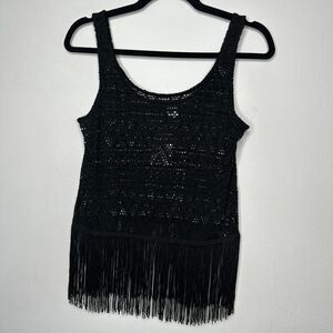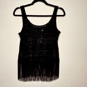 NWT H&M Black Open Crochet Tank Top With Fringe Hem Scoop Neck Sleeveless 4