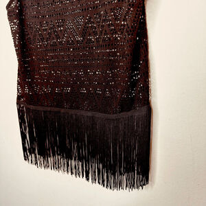 So cute when creating a bohemian look, day to night transition or even a cover up for the beach! Sheer open knit cut out design with 6" of fringe at the bottom.