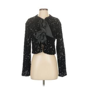NWT H&M Black TIE-FRONTED SEQUINED JACKET TOP SEQUIN RIBBON Small