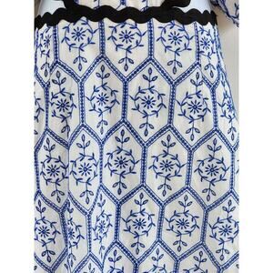 NWT H&M Blue White Embroidered Floral Eyelet Black RicRac Cutout Waist Dress XXL