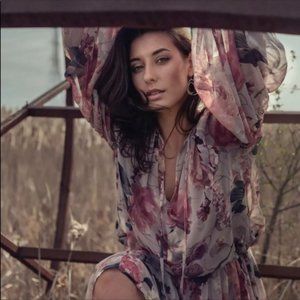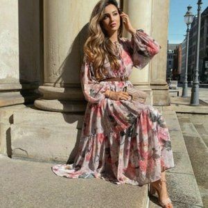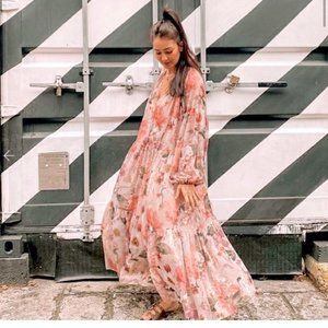 NWT H&M Conscious Floral Chiffon Maxi Dress in Light Pink sz L